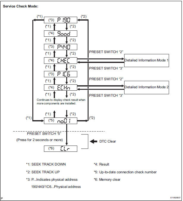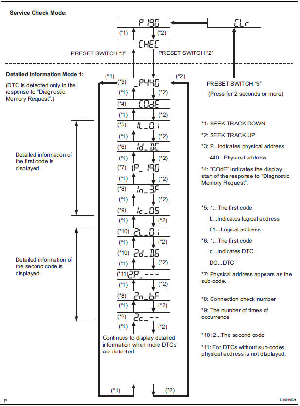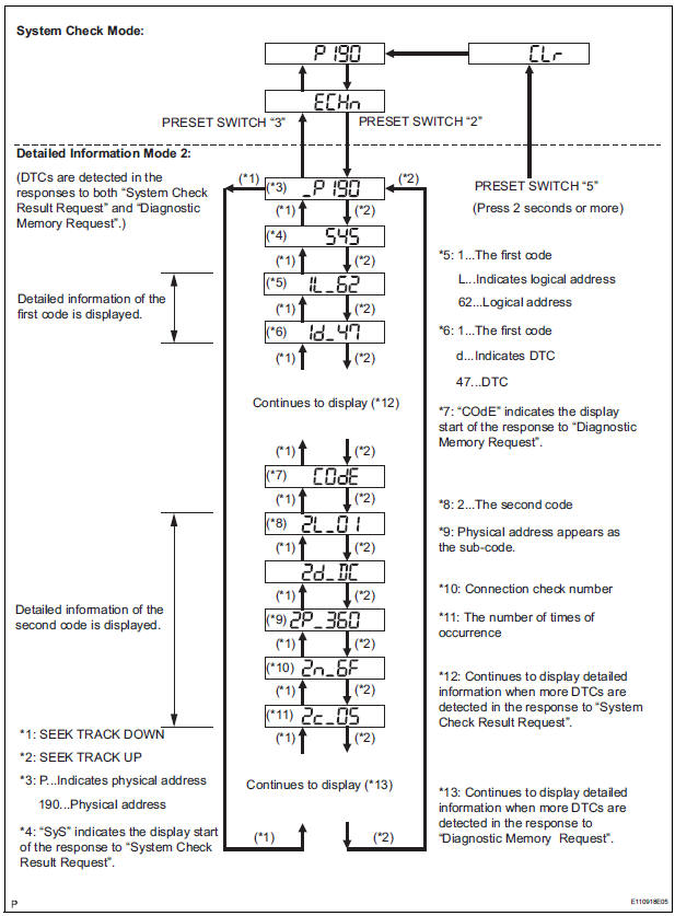 - To check DTCs, press the preset switch "1"