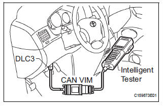 (1) Connect the intelligent tester together with the CAN VIM (controller area network vehicle interface module) to the DLC3.