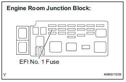 (a) Remove the EFI No. 1 fuse from the engine room junction block.