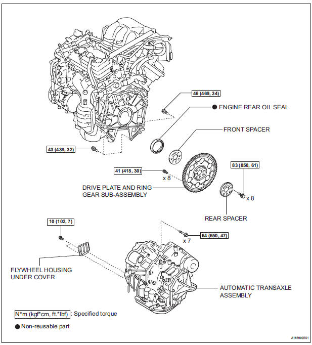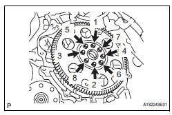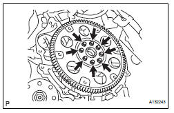 (b) Remove the 8 bolts, front spacer, drive plate and rear spacer.