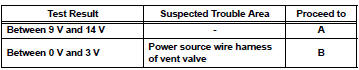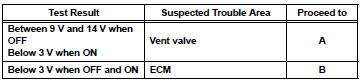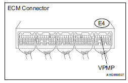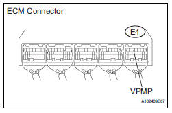 (c) Measure the voltage between terminal VPMP of the ECM connector and body ground when the vent valve is turned ON (close) and OFF (vent) using the tester.