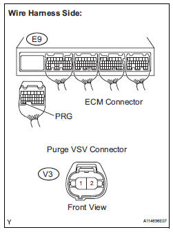 (a) Disconnect the E9 ECM connector and the V3 purge VSV connector.