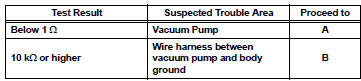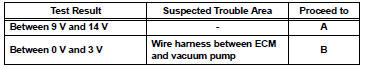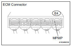 (b) Measure the voltage between terminal MPMP of the ECM connector and body ground when the vacuum pump is turned ON and OFF using the tester.