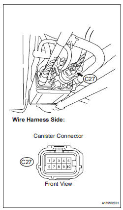(d) Measure the voltage between terminal 9 of the canister connector and body ground.