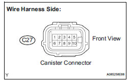 (f) Measure the voltage between terminal 1 of the canister connector and body ground.