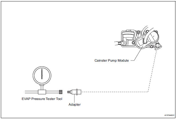 (b) Connect the EVAP pressure tester tool to the canister with the adapter.