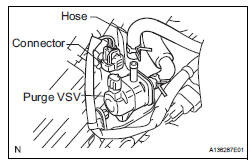 (a) Disconnect the connector and 2 hoses from the purge VSV.