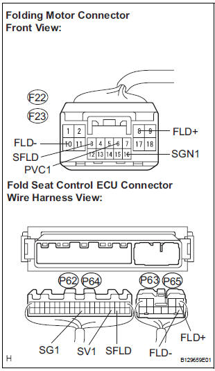 2 CHECK HARNESS AND CONNECTOR (FOLD SEAT CONTROL ECU - FOLDING MOTOR)