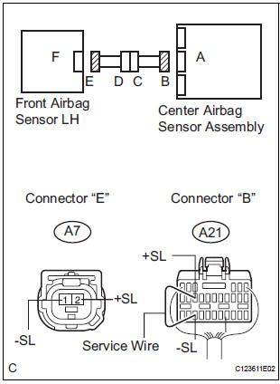 NOTICE: Do not forcibly insert a service wire into the terminals of the connector when connecting.