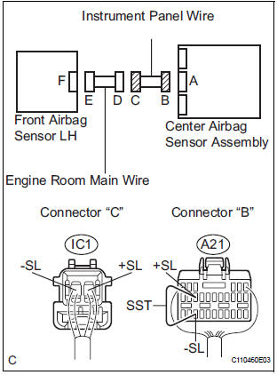 If the center airbag sensor assembly receives signals from the front airbag sensor LH, it judges whether or not the SRS should be activated.