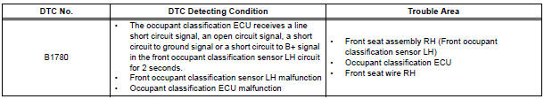 DTC B1780 is recorded when a malfunction is detected in the front occupant