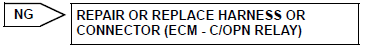5 CHECK HARNESS AND CONNECTOR (ECM - C/OPN RELAY)