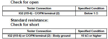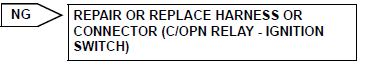 7 CHECK HARNESS AND CONNECTOR (C/OPN RELAY - IGNITION SWITCH)