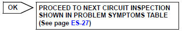 PROCEED TO NEXT CIRCUIT INSPECTION SHOWN IN PROBLEM SYMPTOMS TABLE (See page ES-27)