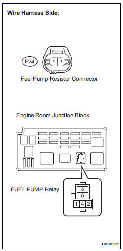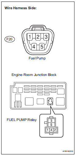 (a) Check the wire harness between the FUEL PUMP relay and fuel pump.
