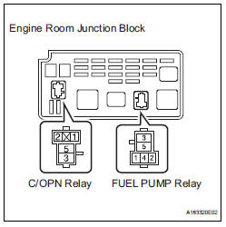 (1) Remove the FUEL PUMP relay from the engine room junction block.