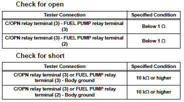 13 CHECK HARNESS AND CONNECTOR (C/OPN RELAY - FUEL PUMP RELAY)