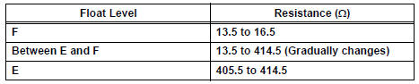 HINT: If the value is not as specified, replace the fuel sender gauge assembly.