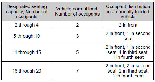 *: Table 1 - Occupant loading and distribution for vehicle normal load for various designated seating capacities
