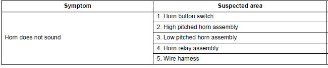 Horn relayProblem symptoms table