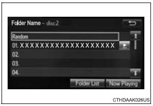 Turn the “TUNE•SCROLL” knob to move the cursor box to select a desired item from the list, and press the “TUNE•SCROLL” knob to play it. The track that is being played is highlighted.