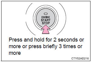 Vehicles with a smart key system: To stop the engine, press and hold the engine switch for 2 consecutive seconds or more, or press it briefly 3 times or more in succession.