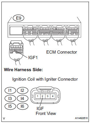 2 CHECK HARNESS AND CONNECTOR (IGNITION COIL ASSEMBLY - ECM (IGF1 SIGNAL TERMINAL))
