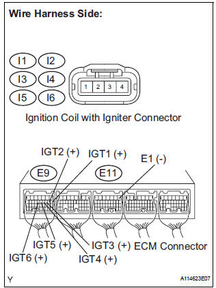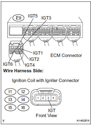 5 INSPECT ECM (IGT1, IGT2, IGT3, IGT4, IGT5 OR IGT6 VOLTAGE)