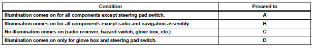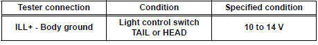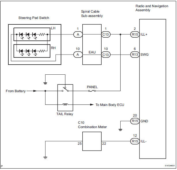 Power is supplied to the radio and navigation assembly and steering pad switch illumination when the light control switch is in the TAIL or HEAD position.