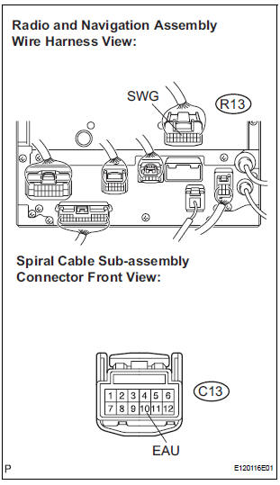 5 CHECK HARNESS AND CONNECTOR (SPIRAL CABLE SUB-ASSEMBLY - RADIO AND NAVIGATION ASSEMBLY)