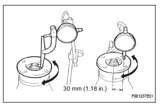 If the runout is greater than the maximum, replace the ring gear with a new one.
