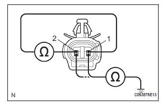 (d) Measure the resistance between terminals 1 and 2 of the speed sensor connector and body ground.