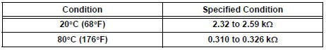 NOTICE: In case of checking the engine coolant temperature sensor in water, do not allow water to go into the terminals. After checking, dry the engine coolant temperature sensor.