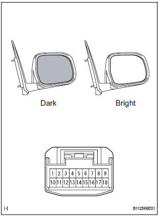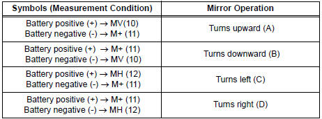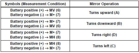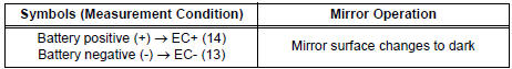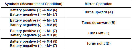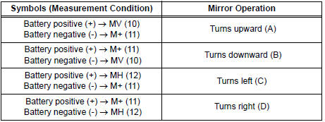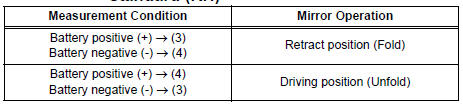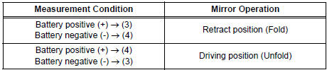 If the result is not as specified, replace the mirror assembly.