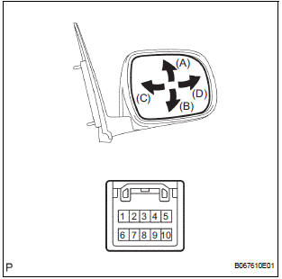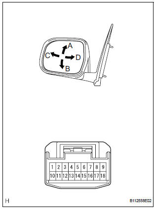 2. INSPECT OUTER REAR VIEW MIRROR ASSEMBLY RH (w/o Memory)