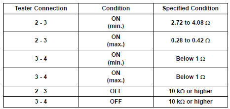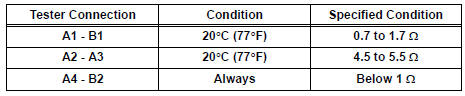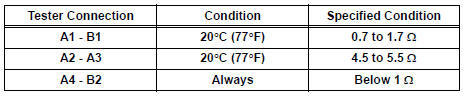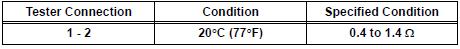 If the result is not as specified, replace the seatback heater assembly.