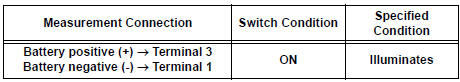If the result is not as specified, replace the seat heater switch or bulb.