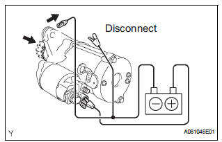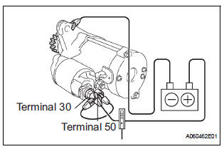 (3) Connect the battery and an ammeter to the starter as shown in the illustration.
