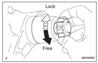 (1) Rotate the clutch pinion gear counterclockwise and check that it turns freely. Try to rotate the clutch pinion gear clockwise and check that it locks.