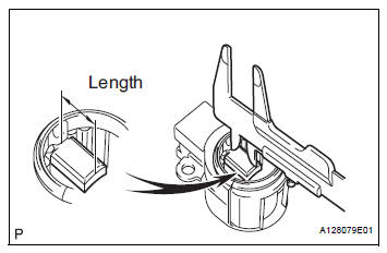 Standard exposed length: 9.5 to 11.5 mm (0.374 to 0.453 in.) Minimum exposed length: 4.5 mm (0.177 in.) If the exposed length is less than the minimum, replace the brush holder assembly.