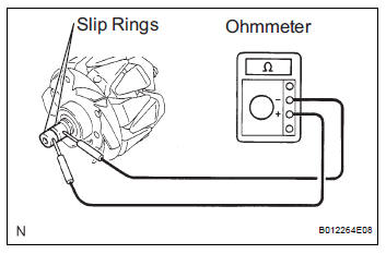 (1) Using an ohmmeter, measure the resistance between the slip rings.