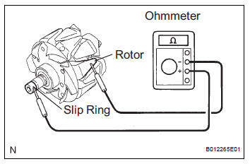 (1) Using an ohmmeter, measure the resistance between the slip ring and rotor.