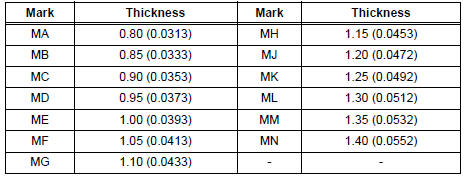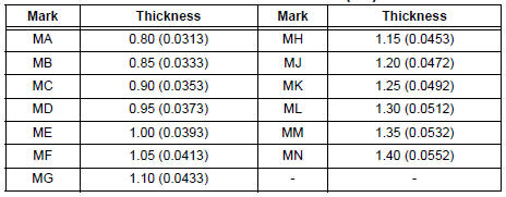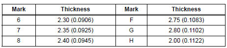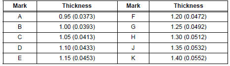 If the clearance is not within the specified value, refer to the table below and select a thrust washer which will ensure that the clearance is within the specified value.