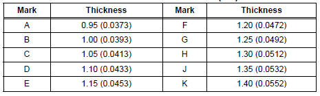 If the backlash is not within the specified value, refer to the table below and select a thrust washer which will ensure that the backlash is within the specified value.