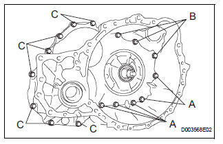Torque: Bolt A 25 N*m (255 kgf*cm, 18 ft.*lbf) Bolt B 33 N*m (337 kgf*cm, 24 ft.*lbf) Bolt C 29 N*m (295 kgf*cm, 21 ft.*lbf)