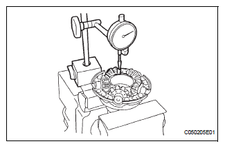 If the clearance is not within the specified value, parts may have been assembled incorrectly, so check and reassemble it.