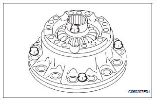 (e) Using SST, turn the differential assembly right and left 2 or 3 times to allow the bearing settle.