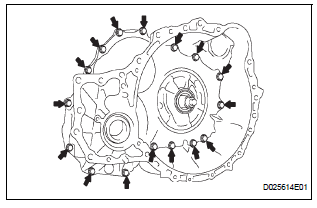 (d) Install the transaxle housing to the transaxle case and tighten them with the 16 bolts.