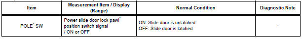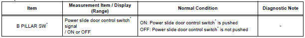 * "B PILLAR SW" appears on the display of the intelligent tester, however the name of the part corresponding to the display of the tester is "Power slide door control switch".