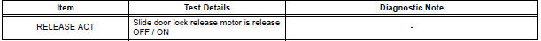 HINT: During the ACTIVE TEST, the intelligent tester sends a signal to the power slide door ECU LH to drive the release motor. If the release motor operates, the release motor itself and the wire harness between the release motor and power slide ECU LH are considered to be functioning normally.